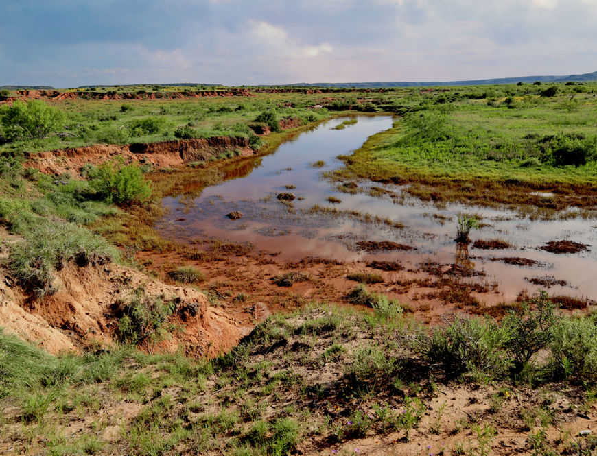 The property is rolling with elevation ranging from 2410ft from the bottom of the creeks to 2560ft to the highest point. The property is made up of terraced grassland and cultivated land, native pasture, and canyons. The ranch has remarkable views of Antelope Hill and Quitaque Peaks.
